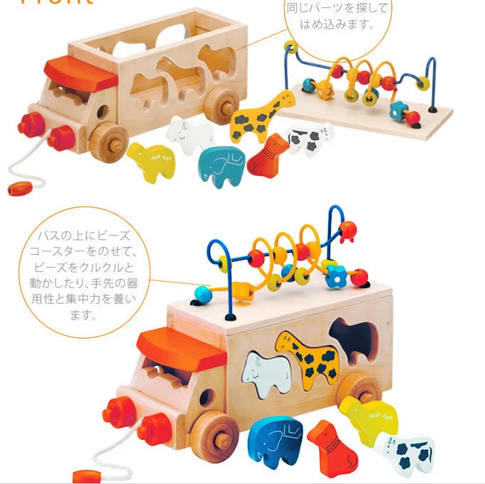 ORIGINAL Children Gift Wooden Baby Drag Toy Car Animal Bus Educational Matching Shape Building Blocks Bead M