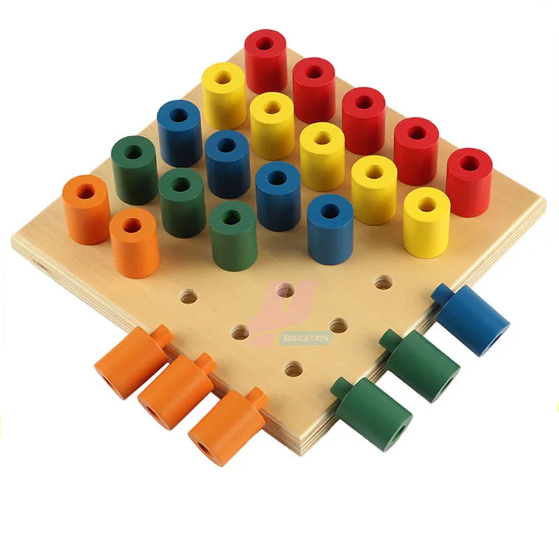 TOP Montessori Sensory Instruction Kids Wood Building Blocks Simple Piston Toys Baby Intelligent Hand-e