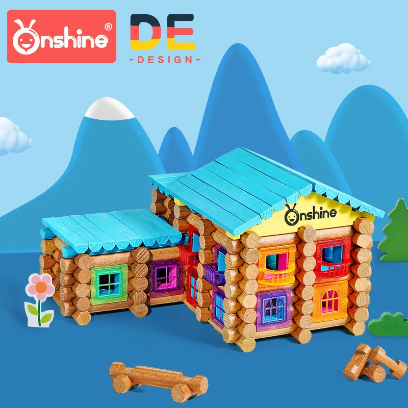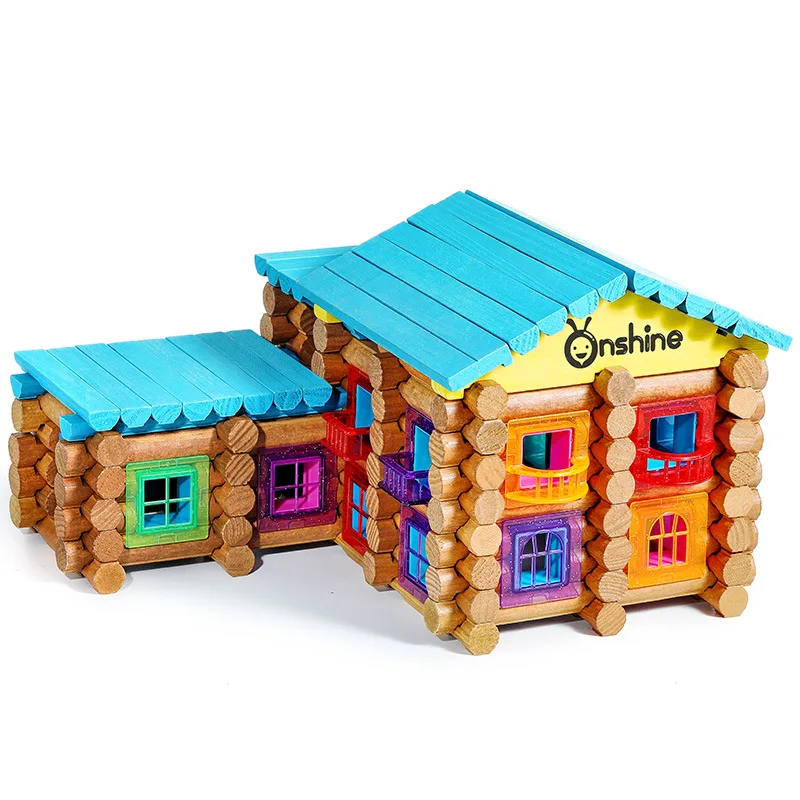 ORIGINAL Onshine DIY House 240/270pcs Wooden Lincoln Logs Hospital school Building Blocks with Puzzle Scene