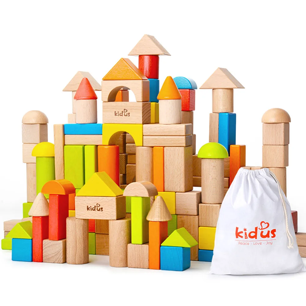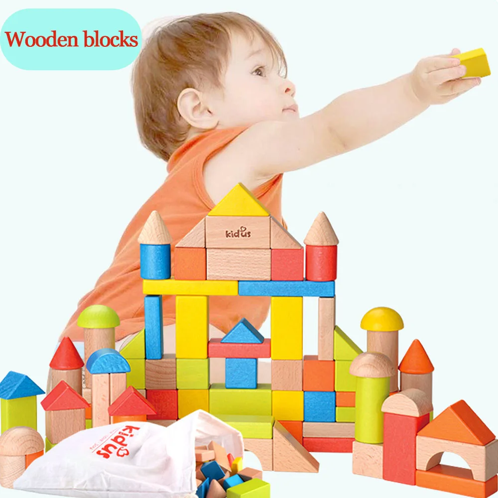 HIGH QUALITY 80 PCS Wooden Blocks Early Educational Toy Geometric Assembling Building Blocks Colorful Beech Wood