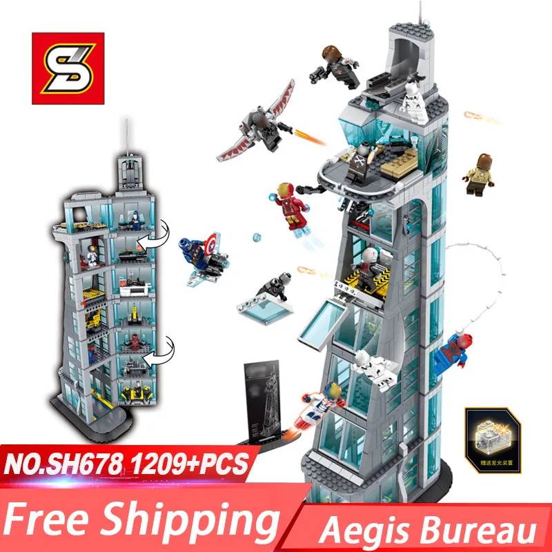 SH678 Avenger Super Hero Attack on Avengers Tower Aegis Bureau Building Block Toys Compatible With