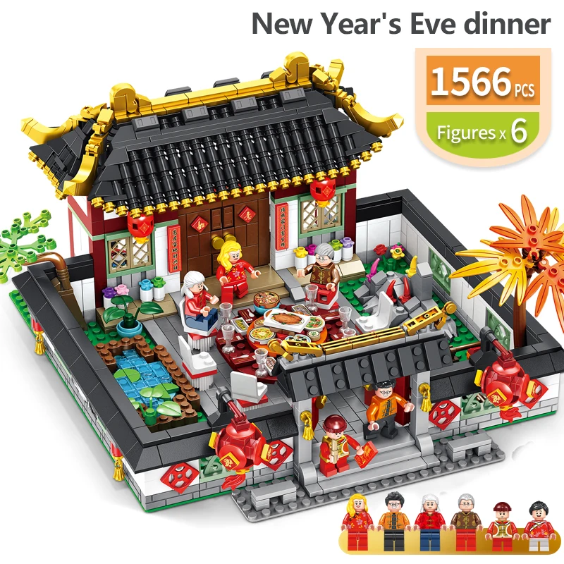 Best Quality 2019 New Chinese style series 1566Pcs New Year's dinner Model Building Kits Blocks Kid new Year Toy