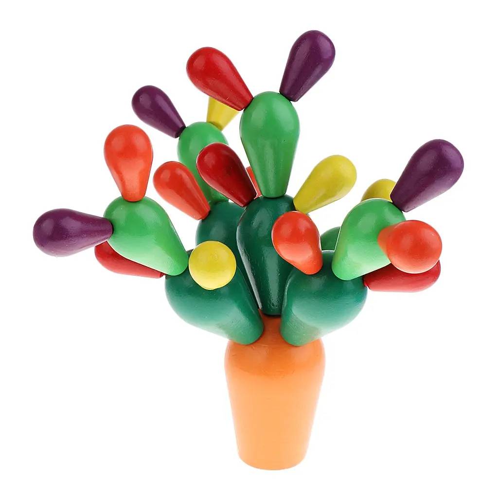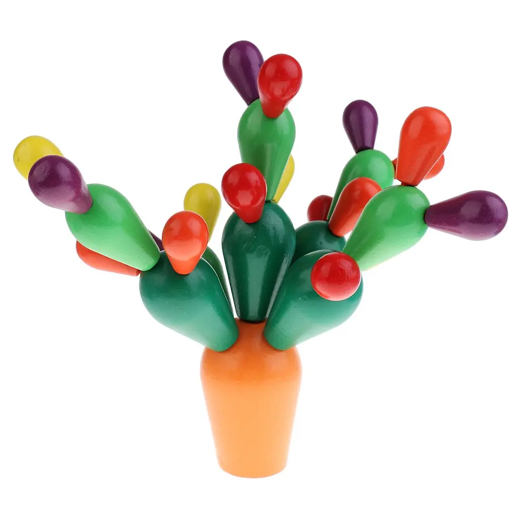 Montessori Sensory Educational Wooden Toys Mikado Cactus Building Blocks Color Learning Preschool T