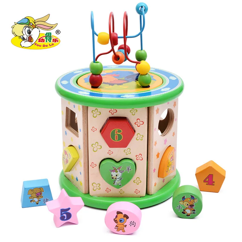 Children Fun Early Education Shape Intelligence Bead-stringing Toy Wooden Toy Boxed Colorful Buildi