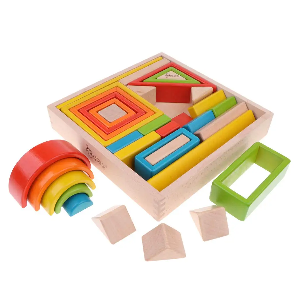 32pcs Wooden Building Blocks Color Shape Cognition Imagination Development Montessori Educational T