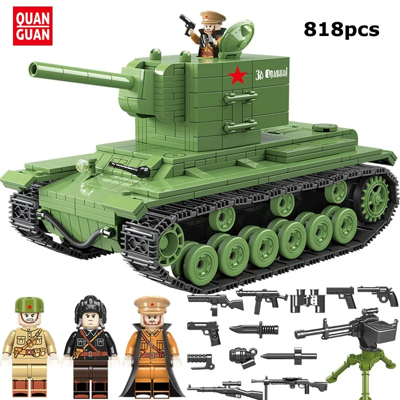 BEST QUALITY 818 PCS WW2 Military Soviet Russia KV 2 Tank Building Blocks Soviet Soldier figures Weapon accessor